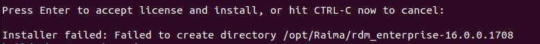 After copying the installation file to the development host, make sure the execute permission is enabled for the install package (e.g., chmod +x rdm_enterprise-obj-lnx-x86_64-16.0.0.1664.run.sh).